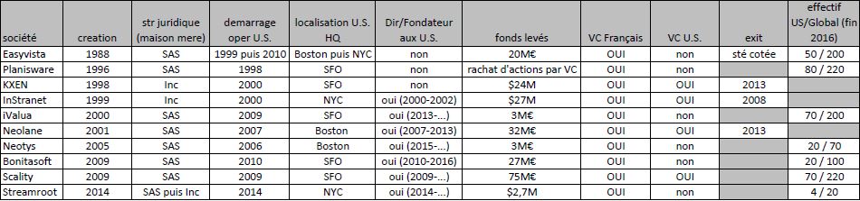 - Aller aux U.S. a un coût : voyages, marketing, analystes, salaires (~+50% par rapport à la France), juridique, support local… A l’exception de Neotys, 6 des 10 sociétés du panel ont levé des fonds importants (entre 20 et 75m€). Planisware et iValua se sont basées sur un modèle d’autofinancement, qui prend du temps, ce qui n’est pas toujours possible en fonction de la dynamique du marché et de l’intensité concurrentielle… Quant à Streamroot, ils ne sont qu’au début de leur histoire et il est probable qu’ils lèvent des fonds importants dans le futur.